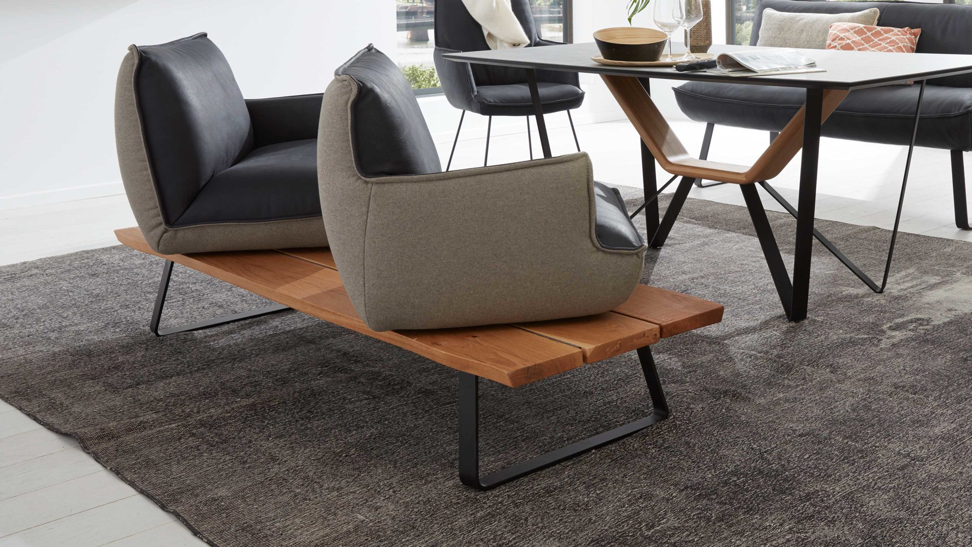 • Die Abbildung zeigt ein Wohnbeispiel, welches auch Dekoration sowie separat erhältliches Zubehör enthält. Im Lieferumfang enthalten ist die Solobank Genzo.