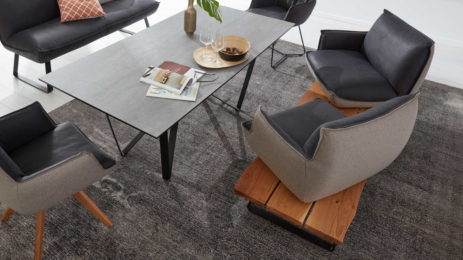 Modell:Kleo|NA2X|Bezug 1 A-India omega|Bezug 2 Stoff 16 Loden 27|Ton in Ton|Wildeiche natur|Nr. 3 schwarz|2x Drehfunktion|862604-222-00-100+20-104