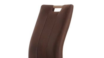 Warm und einladend wirkt der hochwertige Polsterstuhl Vigo mit dunkelbraunem Bezug. Die vier Eichenholzfüße sind Natur lackiert und unterstreichen den schlichten Look des Sitzmöbels genauso wie die Rückenlehne mit Holzgriff. Aufwendige Ziernähte verleihen dem interessanten Design des Polsterstuhls einen zusätzlichen Schliff. Mit den praktischen Maßen von ca. 48 x 96 x 59 cm (BxHxT) findet der Vierfußstuhl auch an kleineren Tischen Platz.
