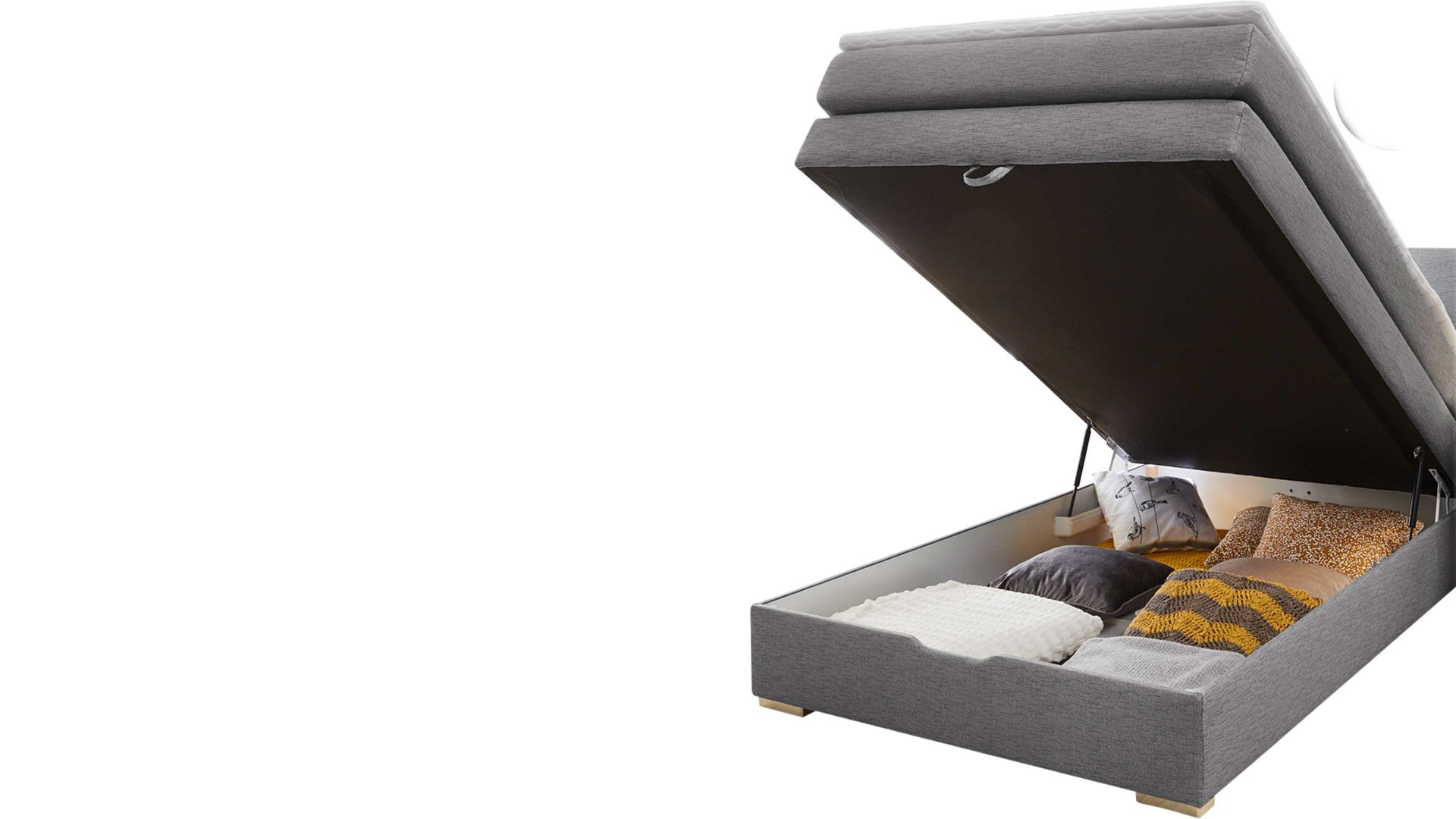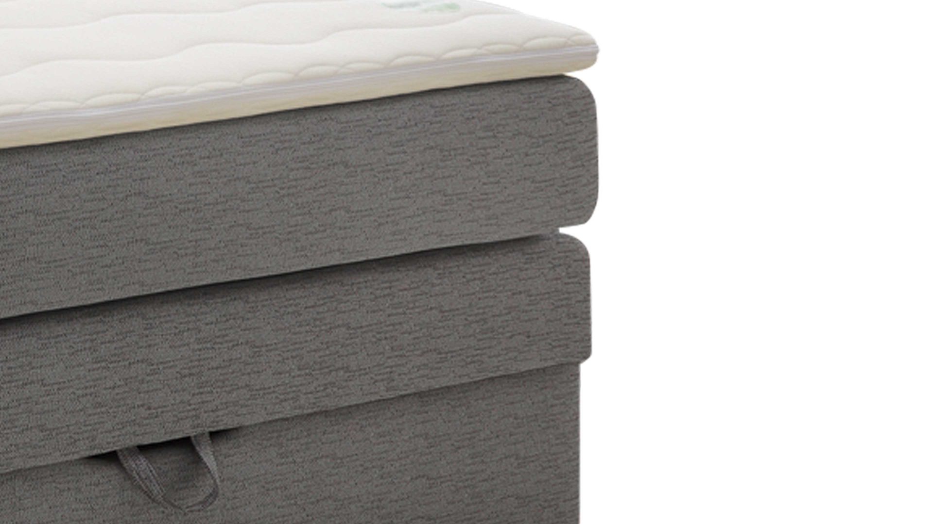 Es kombiniert unauffällig eingebrachte, aber zuverlässig stabilisierende Füße im klassischen Farbton Silber mit einem modern-grauen Flachgewebebezug, der überaus weich wirkt und ein gemütliches Flair in Ihr Schlafzimmer bringt.