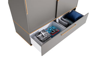 Der hochwertige PAIDI Kleiderschrank Sten kombiniert massive Eiche mit schiefergrauen Melaminoberflächen. Letztere zeichnen sich durch ihre Lichtechtheit sowie die besonders ausgeprägte Kratz- und Stoßfestigkeit aus. Überdies sind sie sehr pflegeleicht. Die massive Eiche begeistert mit ihrer extremen Robustheit und Stabilität. Zudem strahlt sie warme Natürlichkeit aus. Der Holzton harmoniert wunderbar mit dem Schiefergrau. Zusammen sorgen die Nuancen für eine moderne und elegante Optik.