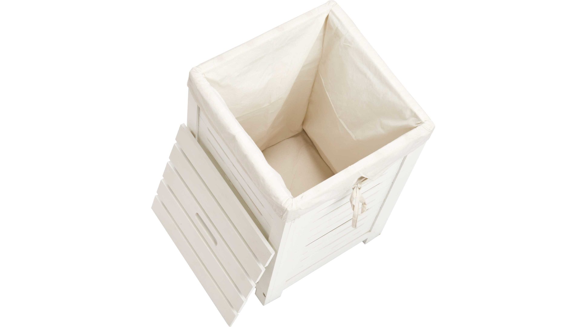 Der Korb ist aus modernem und pflegeleichtem MDF gefertigt. Durch seine weiß lackierte Oberfläche ist er nicht nur ein praktischer Alltagshelfer, sondern ein Hingucker in Ihrem Zuhause. Besonders hygienisch: Sie erhalten den Wäschekorb mit einem herausnehmbaren und waschbaren Wäschesack. Profitieren Sie von den Maßen von ca. 35 x 35 x 55 cm (BxHxT) und platzieren die Wäschetruhe neben Ihrem Bett, Kleiderschrank oder in Ihrem Badezimmer.