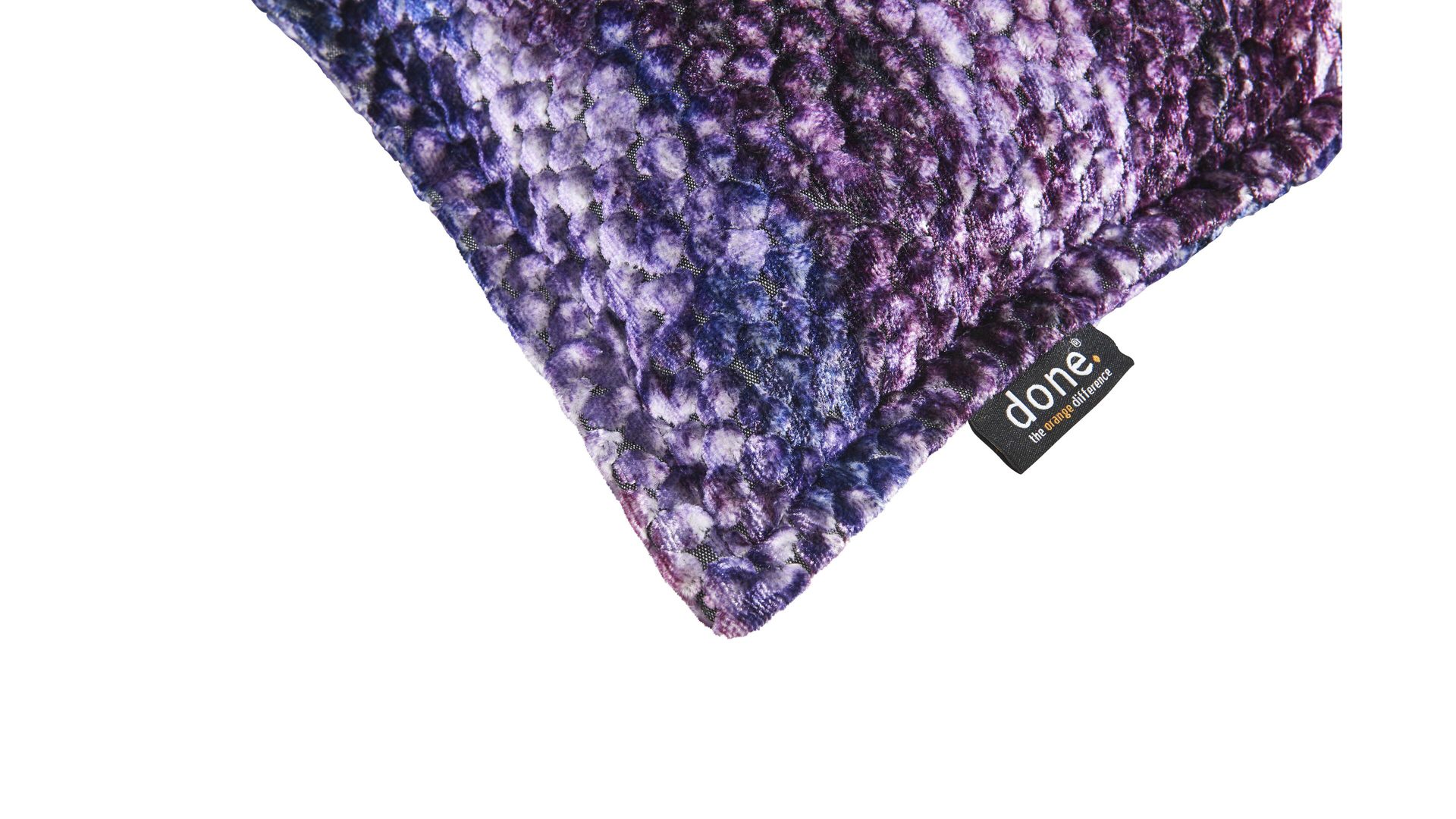 Denn der angenehme Kissenbezug aus lila gemustertem Samt ist edel und weich zugleich. Dekorieren Sie den Kissenbezug entweder alleine oder gleich zu mehreren nebeneinander. Das beidseitige Samtgewebe des Bezugs besteht aus pflegeleichter Kunstfaser und ist bis 30 Grad waschbar. Mit dem verdeckten Reißverschluss können Sie den Bezug ganz leicht abziehen und nach der Wäsche auf links und auf niedriger Stufe bügeln.