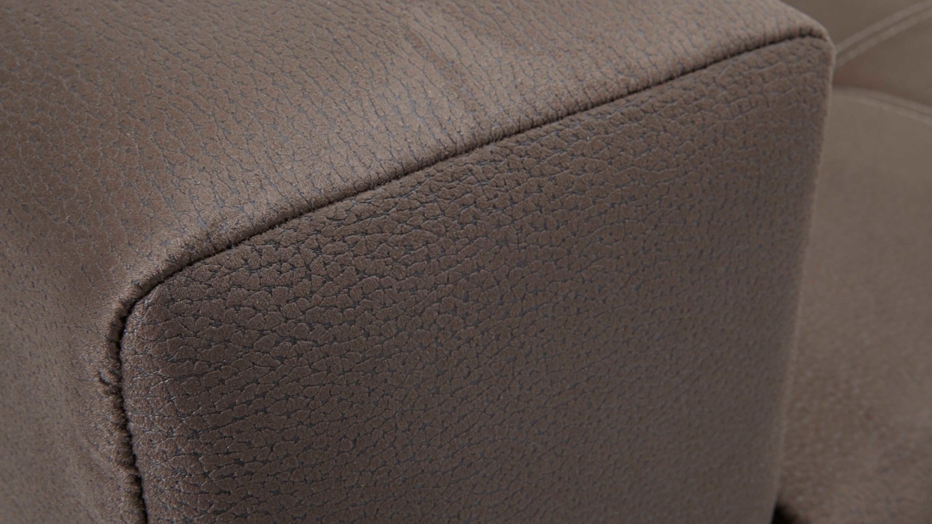Die Holzfüße des Polstermöbels sind wahlweise in silberfarben, Dunkelbraun oder Buche natur bestellbar, eine große Stoffkollektion steht ebenfalls zur Verfügung. Das Ecksofa ist rundum mit Stoff bezogen, kann also auch frei in den Raum gestellt werden.