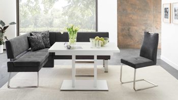 • Die Abbildung zeigt ein Wohnbeispiel, welches auch Dekoration sowie separat erhältliches Zubehör enthält. Im Lieferumfang enthalten ist der Dreh-Polsterstuhl Genzo.