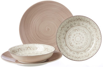 taupefarbenes Steinzeug - 8-teilig, Tafelgeschirr