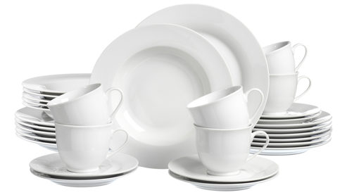 weißes Porzellan mit rotem Rand - achtteilig, Tafelgeschirr